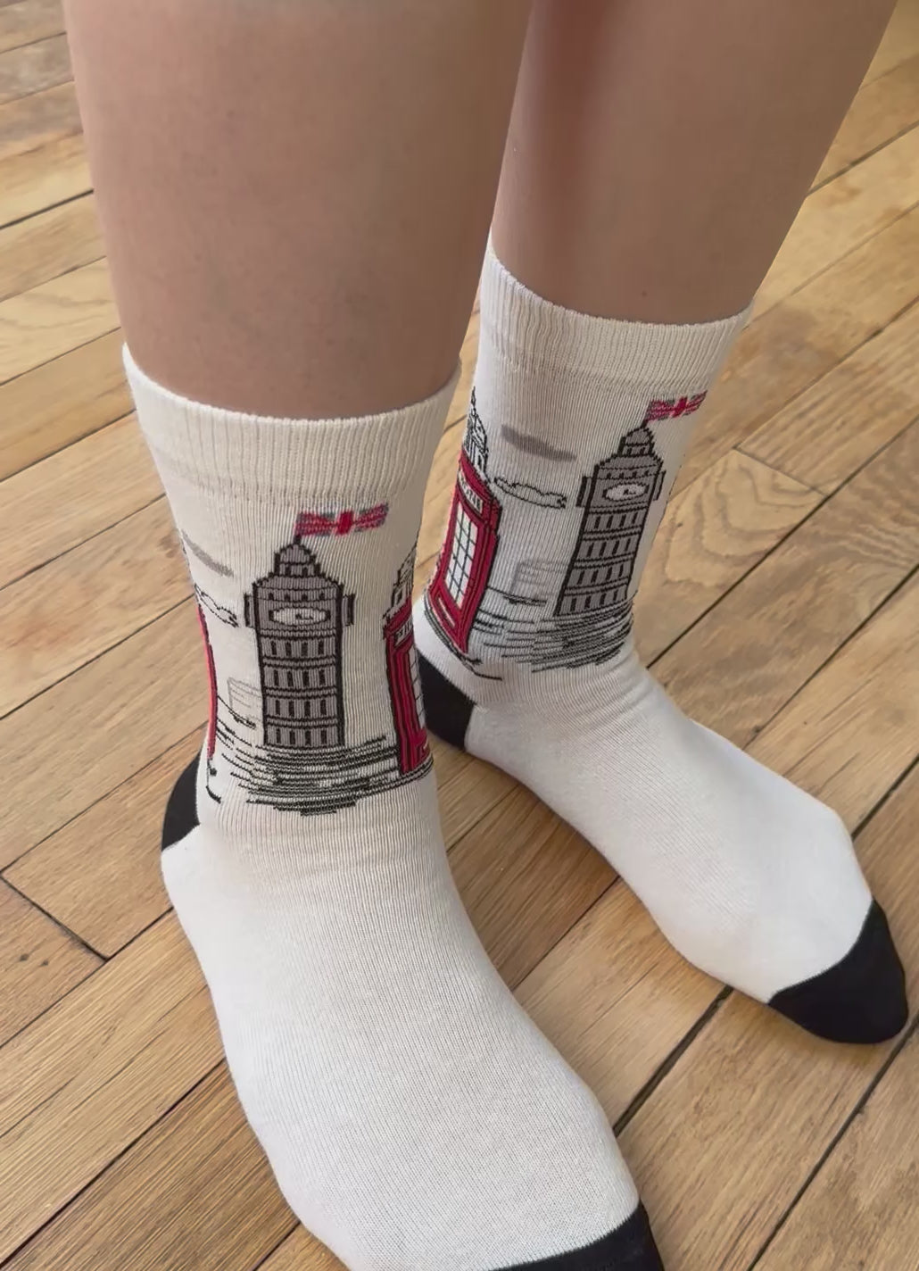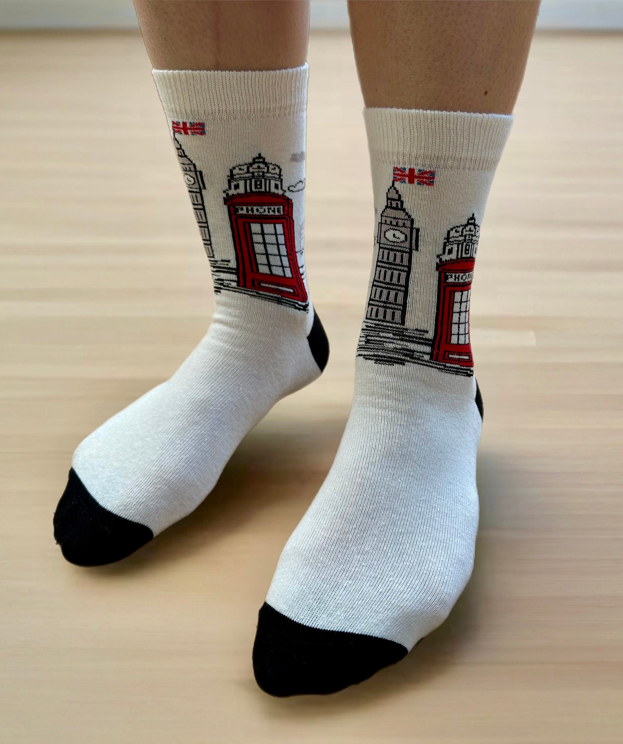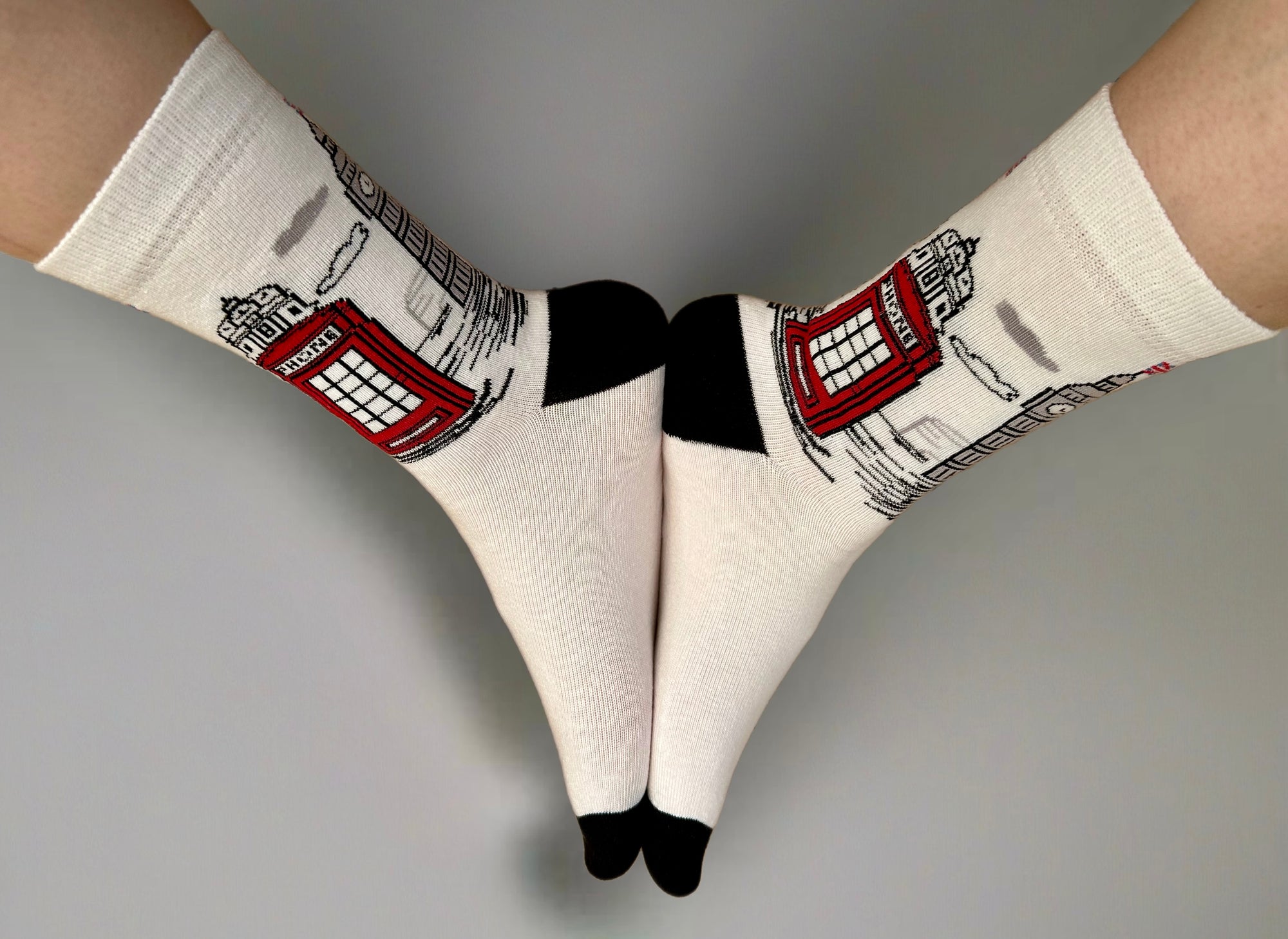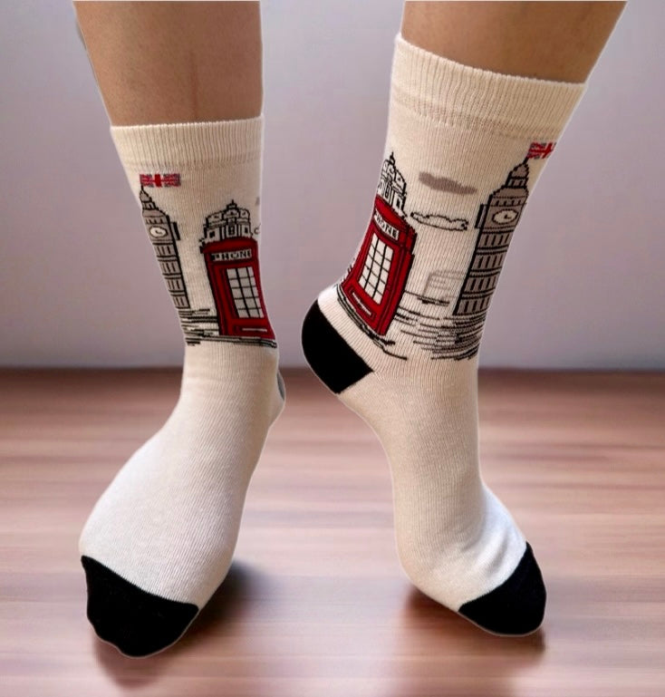 London Big Ben Telephone Booth Socks, Novelty Fun Gift Unisex Socks