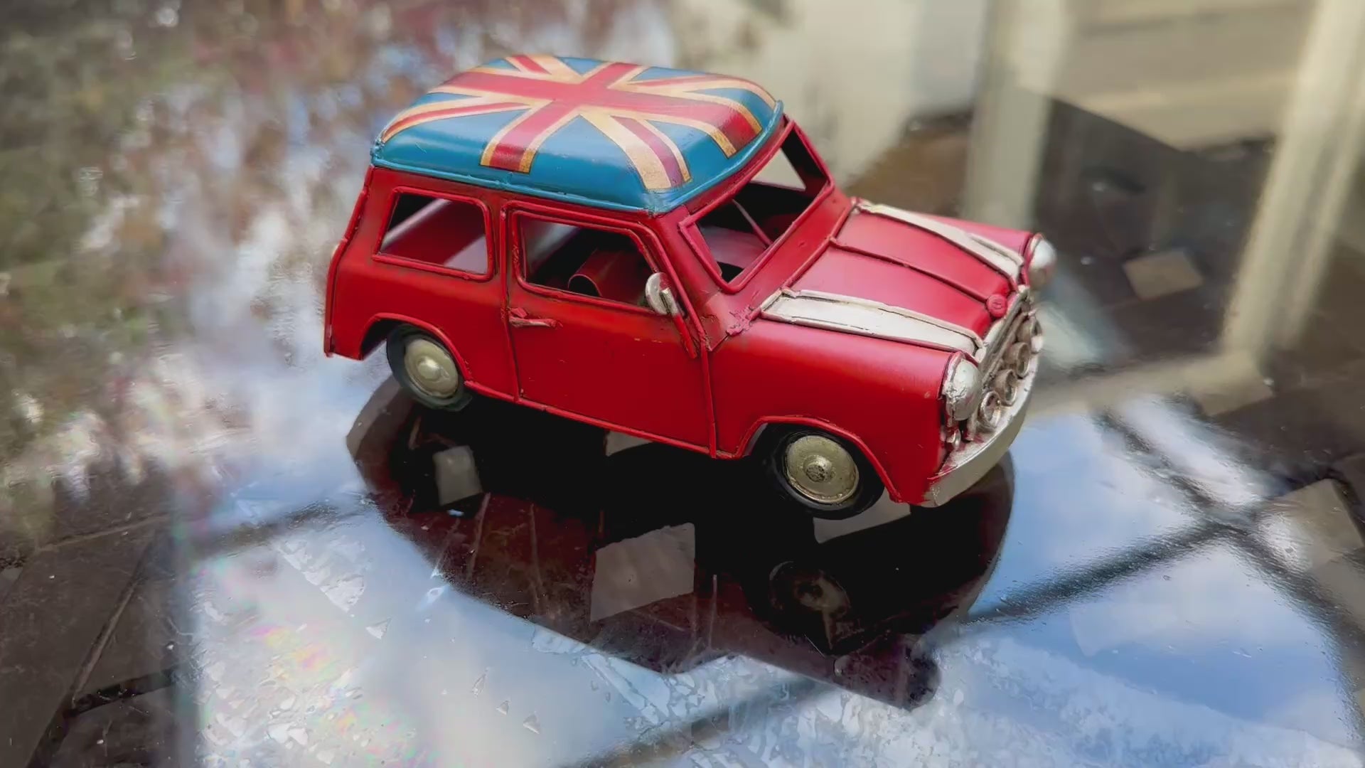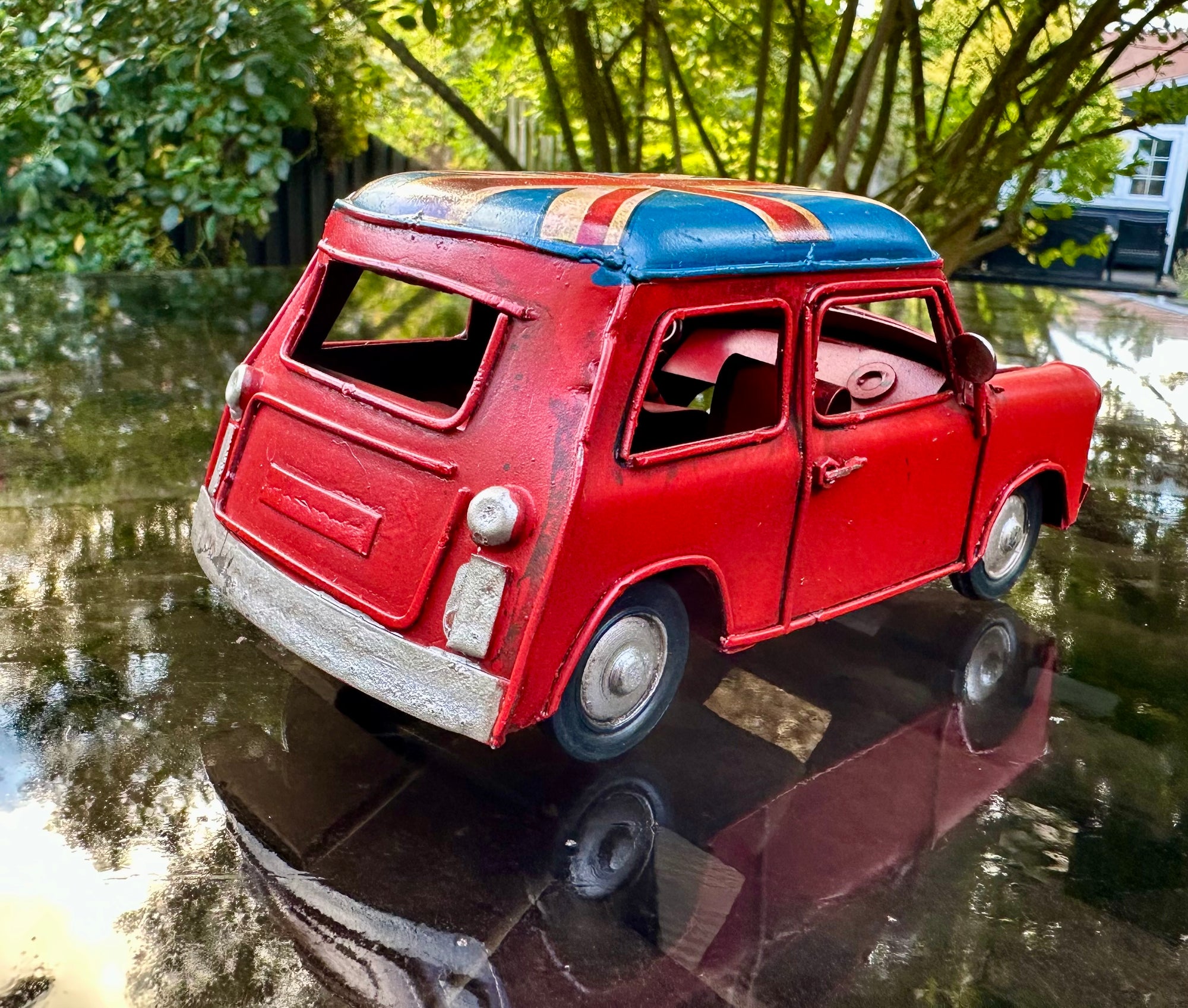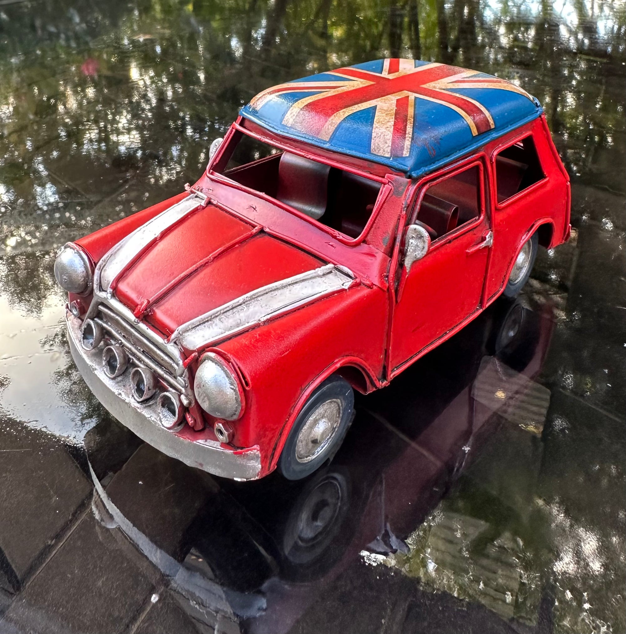 Vintage Union Jack Roof Ornament Tin Metal Retro Red Mini Cooper Car Antique