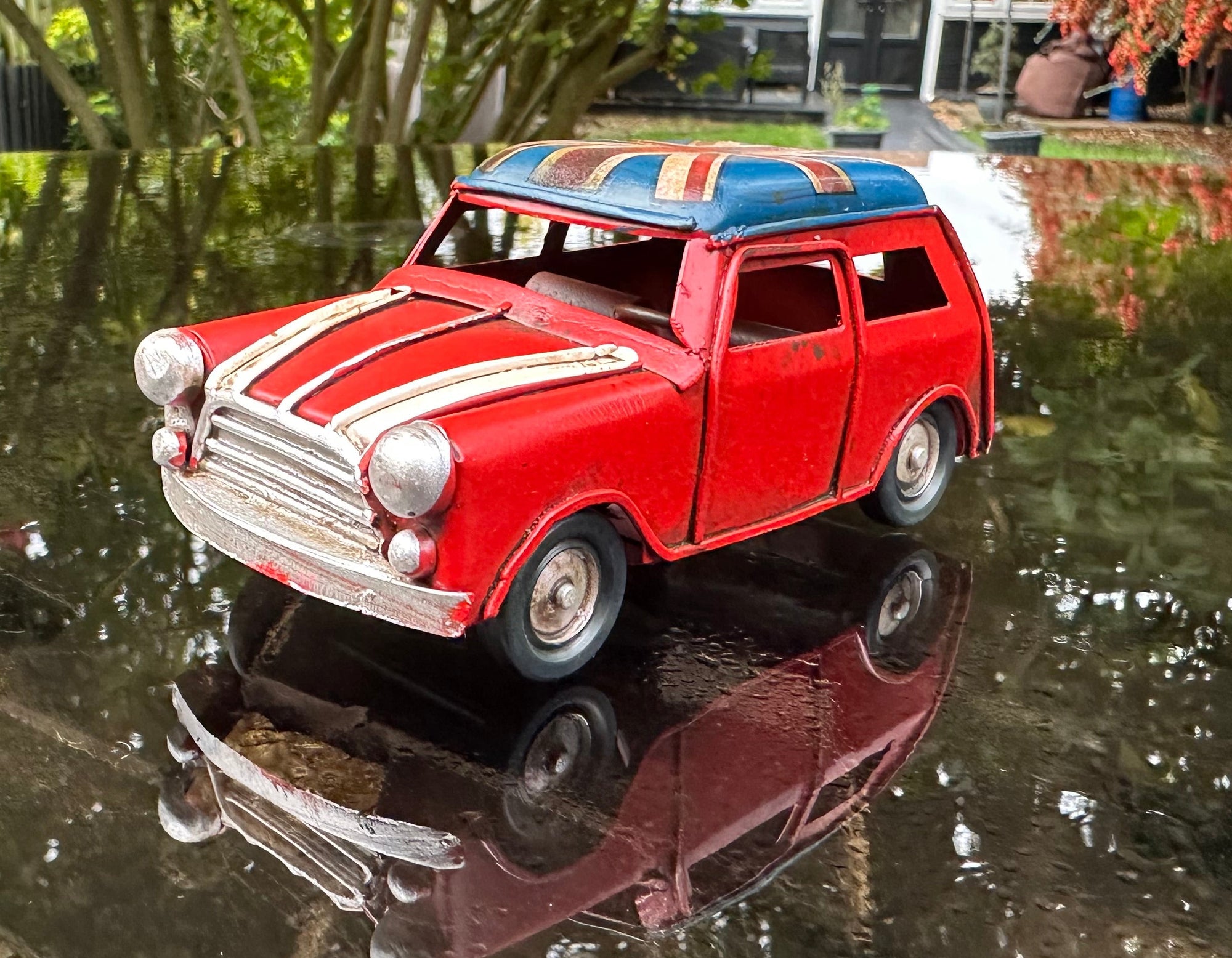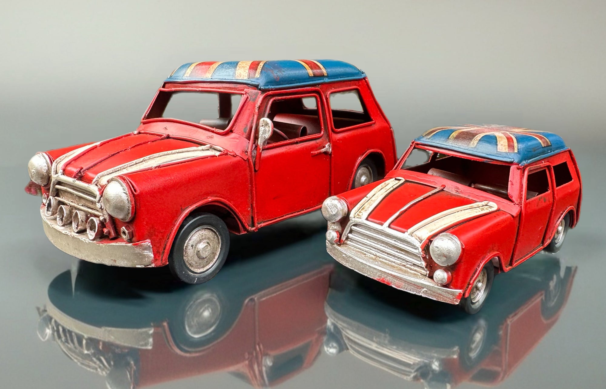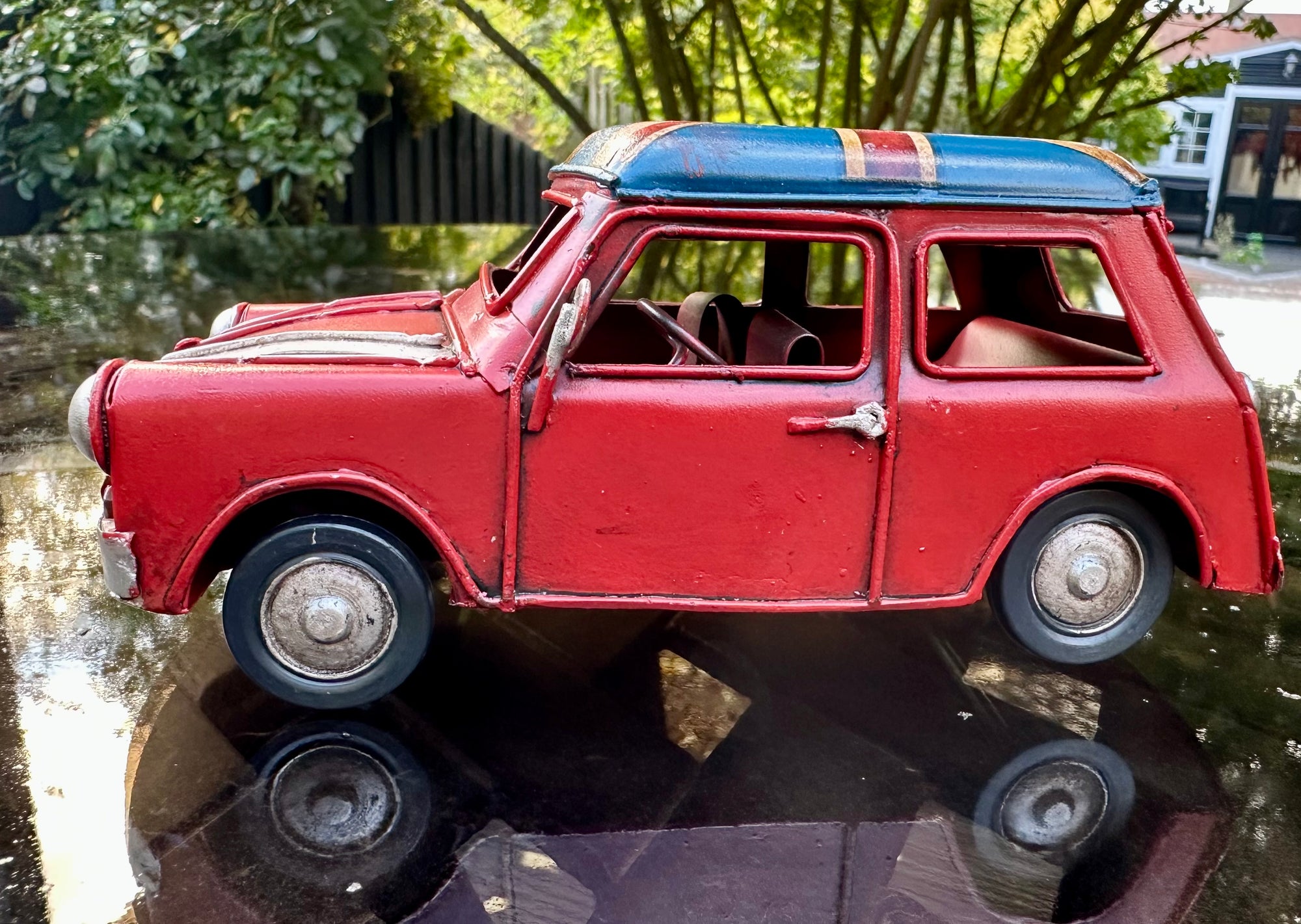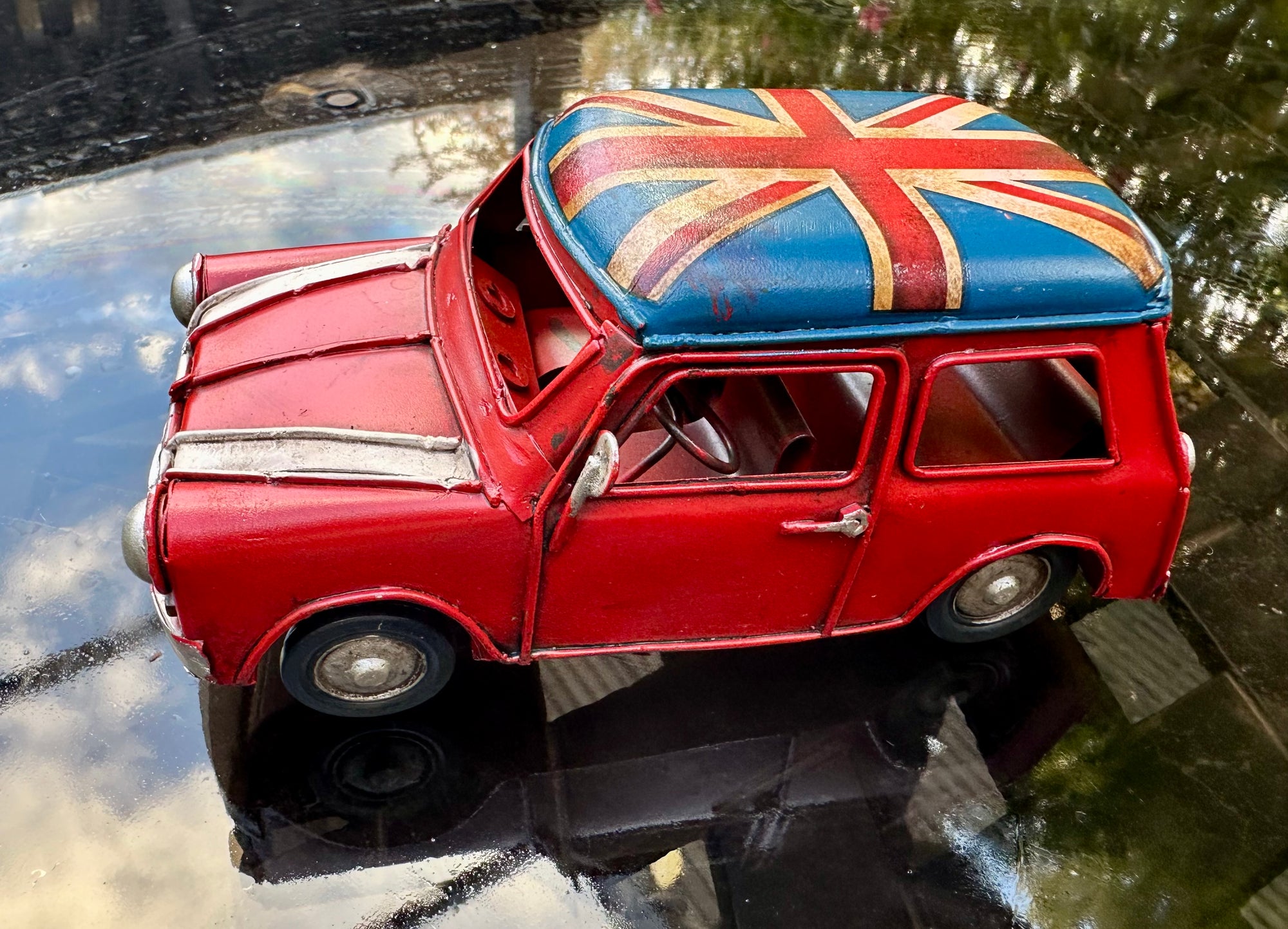 Vintage Union Jack Roof Ornament Tin Metal Retro Red Mini Cooper Car Antique