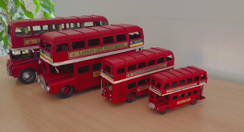 Vintage London Double Decker Bus, Retro Red Bus, City Sightseeing, Metal Ornament Antique