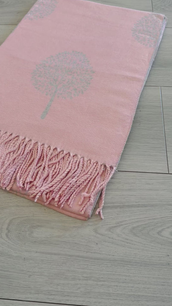 Soft Pink Grey Mulberry Life Tree Print Large Reversible Cashmere Blend Warm Scarf Shawl